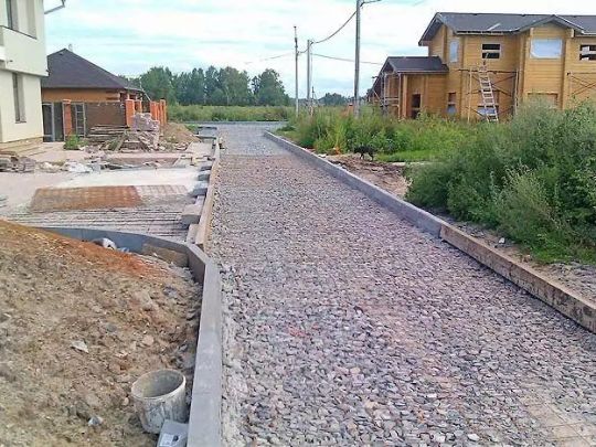 • Подготовка основания: выемка грунта, уплотнение, устройство песчано‑щебёночной подушки